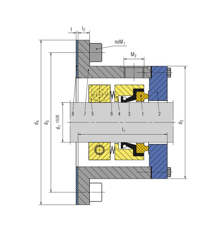 Flushing: approx. 1 l/h per Millimeter of shaft diameter (d1)